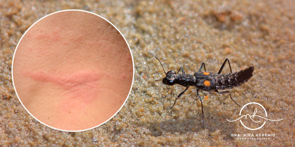 As toxinas (pederina e outras) da hemolinfa do inseto causam placas e/ou lesões lineares bizarras, com vermelhidão, inchaço, aparecimento de bolhas e crostas causando um desconforto imenso.